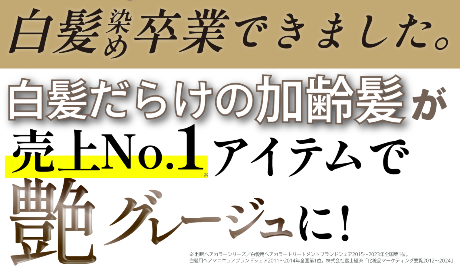 白髪用ヘアマニキュアブランドシェア2011〜2014年全国第1位。株式会社富士経済「化粧品マーケティング要覧2012~2024」